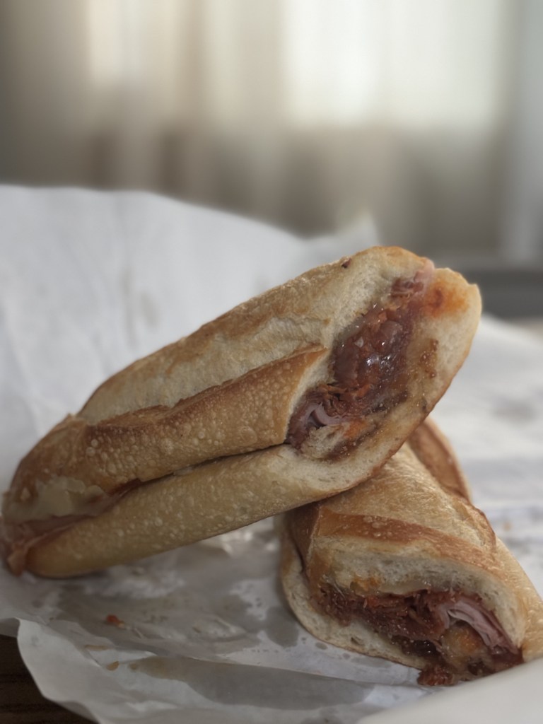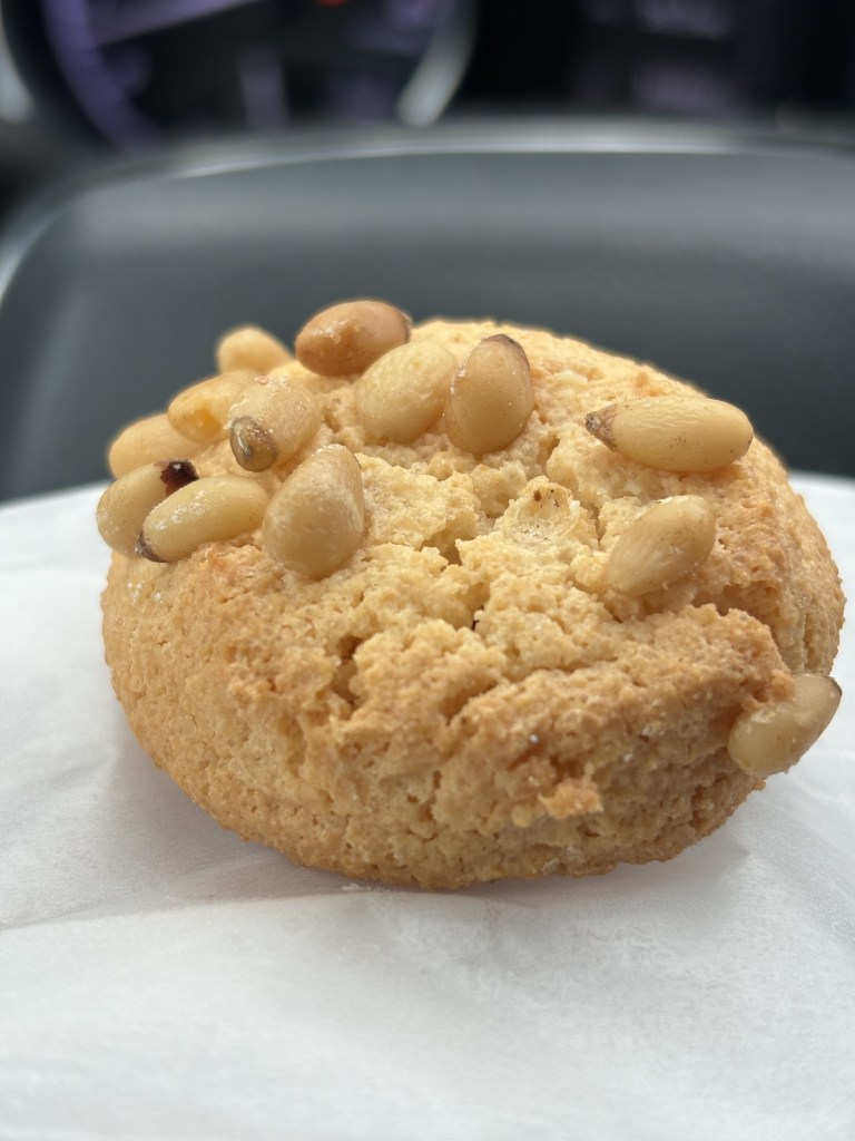 I ordered The Sicilian which as described on the menu includes: Boars head branded deluxe ham, serrano ham, manchego cheese, chorizo, fig jam, drizzle of olive oil, on a baguette. And from the bakery, I got a small cannoli and pignoli cookie. I enjoyed all of it. The sandwich/hoagie/sub was delicious, but I don’t think it’s “the one”, you know? I may have to try some other options there, but I think I may still be on the hunt for what I’m dreaming up in my mind. It is a solid sandwich though and flavorful. No fault of D’Amico’s, I think I like the idea of a cannoli than the item itself. I order it so often when I go to Italian spots, but I’d much rather have the tiramisu. I liked the filling, and if it was a cannoli dip, I’d be here for it. This was the first time I tried a pignoli cookie, it was a delight, sweeter than I imagined. But simple and lovely.