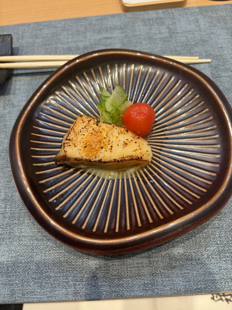 Kinmedai with miso sauce – Please note, I may be wrong on the actual fish. But, wow. Whatever it was, I think this in miso sauch was my favorite bite of the night. This small bite was buttery, umami, and simply melted away. Such a small bite with so much flavor. It came with crisp, lightly sweet, pickled cucumbers, which were a great palate refiner to the rich fish, plus one little tomato.