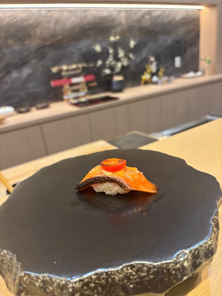 6 – Dry Aged King Salmon – A very solid nigiri piece. Salmon was delicious, a simple torched slice of tomato that added a touch of sweetness.