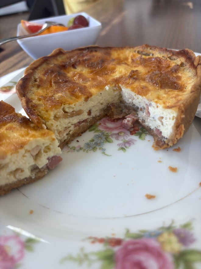 The Food: I was originally going to just load up on pastries… And don’t you worry, I sure did that too. But I was in the mood for something savory, so I started with a Quiche Lorraine and a coffee. I enjoyed the quiche. Light, fluffy, and custardy, with some salty fattiness from the bacon bits. It really had that homemade taste and look. Not the basic perfect tart shell, but one you could tell was prepped in-house. It came with a side of a small salad or fruit. A good portion size, and $11, not bad at all.