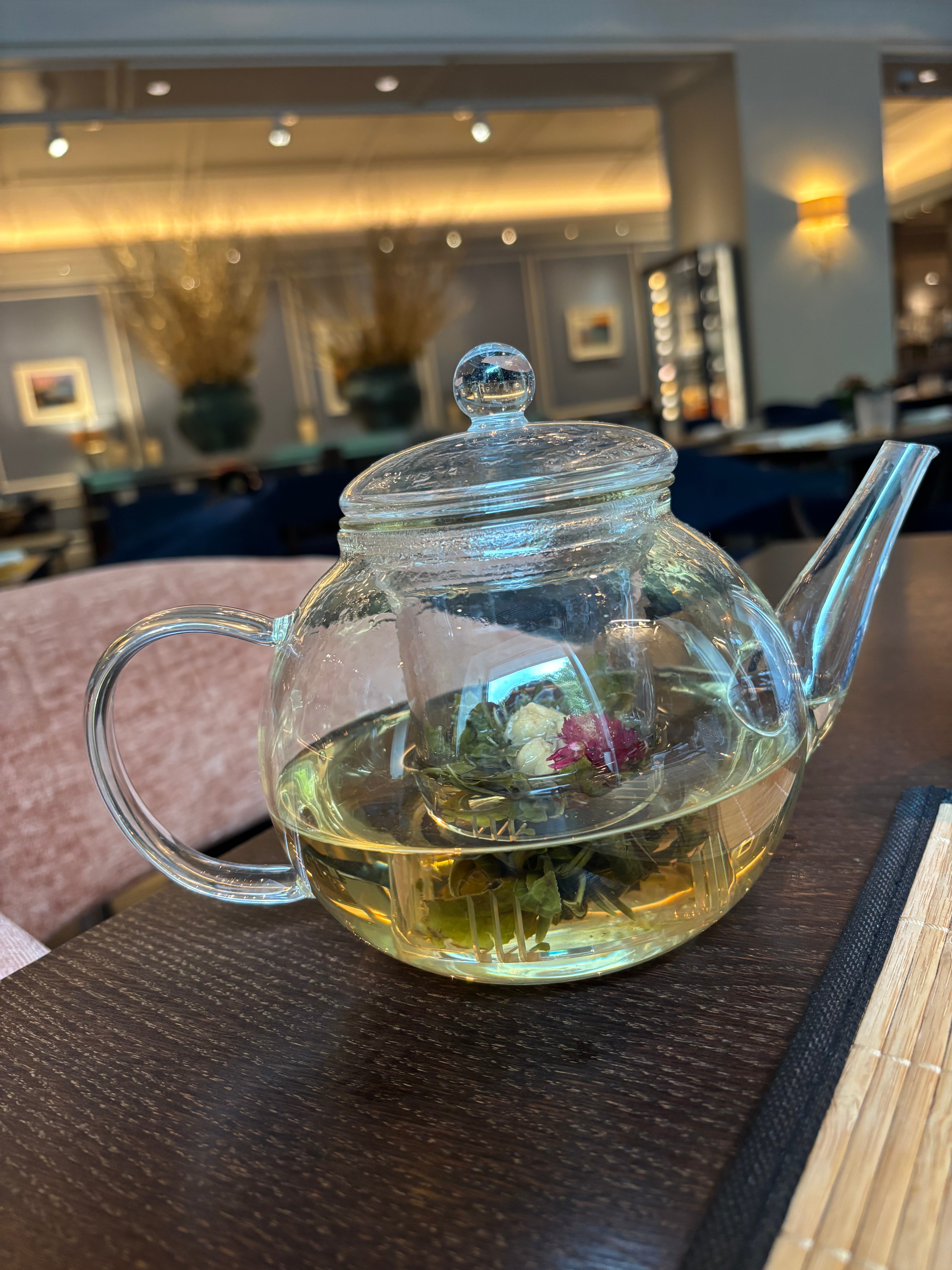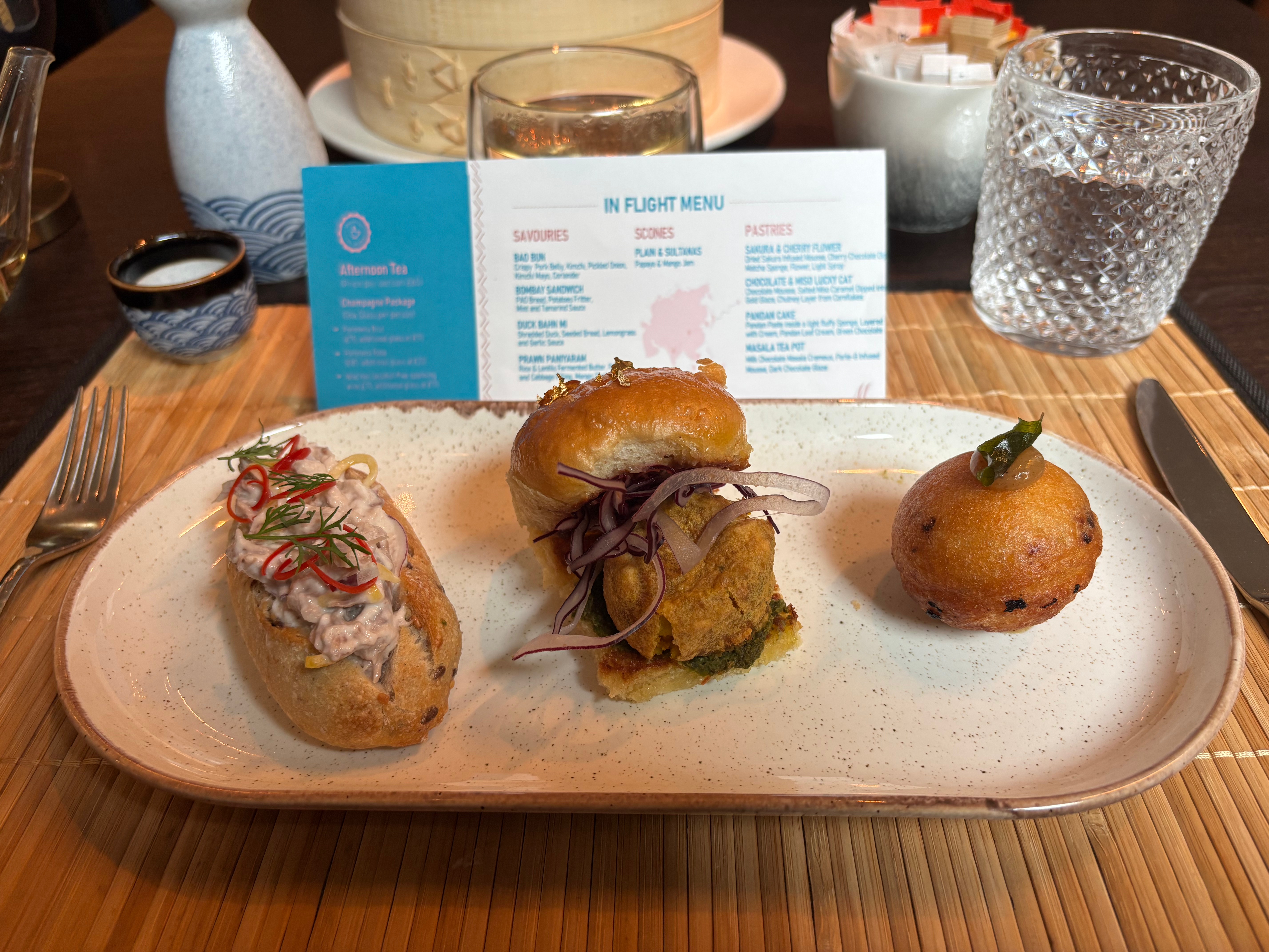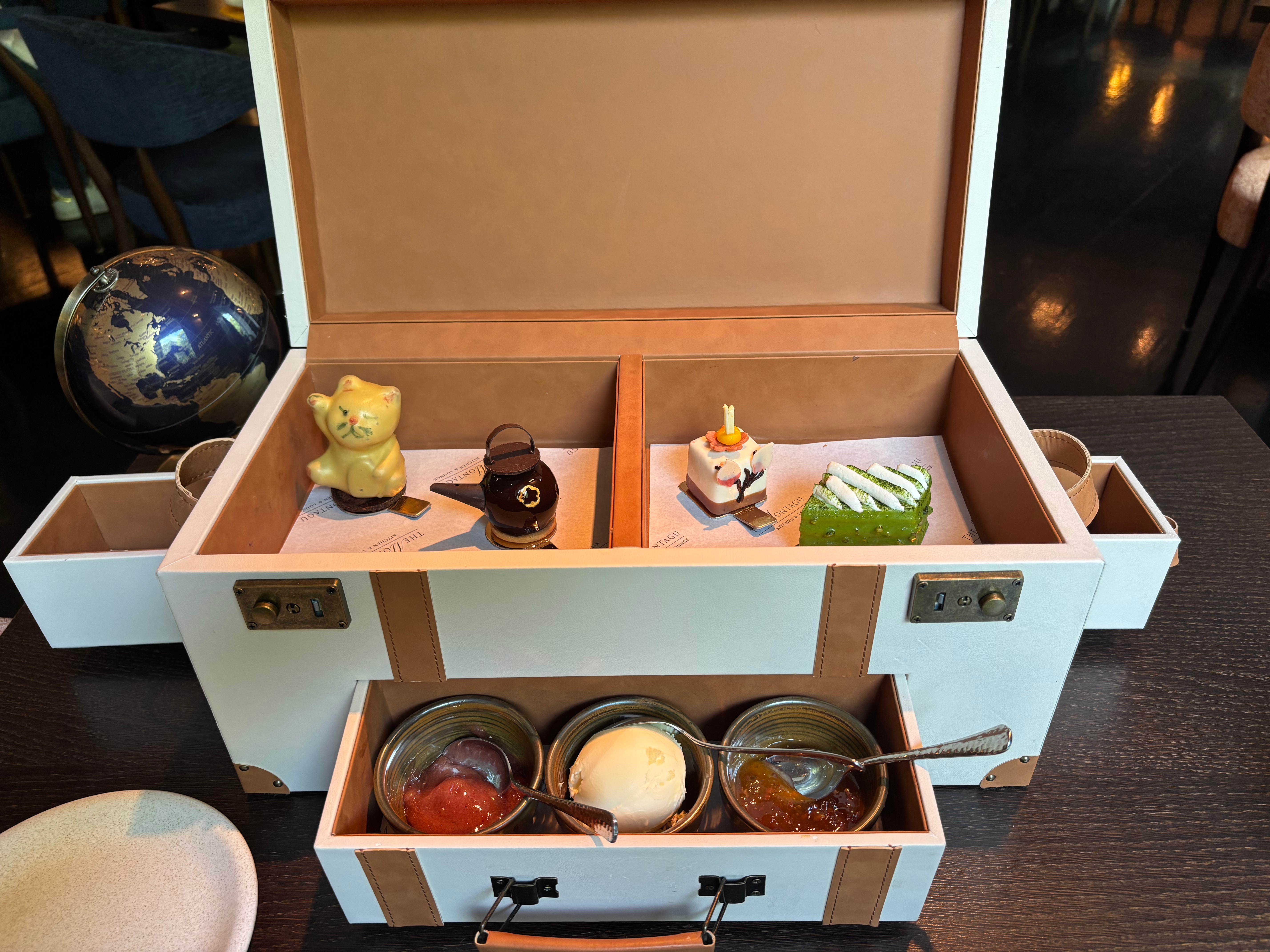 I don’t mind dining alone, but it’s always a little awkward when there’s barely anyone else dining. Feels like too much attention for just me. Even though this was a TikTok find, I was excited because it was a travel themed afternoon tea. Specifically, a nod to Asian flavors. It seemed right up my alley. The savory sandwiches included a bao, banh mi, a Bombay sandwich, and a prawn bite. To be honest, they all sounded fantastic, but fell short. The regular menu has more of a Mediterranean influence, so I don’t know if it’s because it’s not their speciality. I was less than impressed.