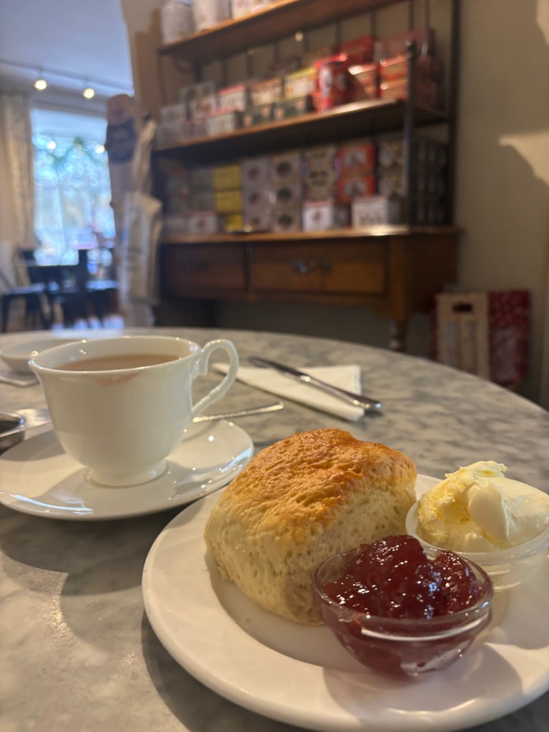 I wasn’t quite ready to leave the Cotswolds. But I had a few more foodie spots I hadn’t hit up o try before I parted from Broadway. With checkout super early, I headed out and hung out a bit before the shops started to open up. As soon as I saw Tisanes Tea Rooms open their doors. You guessed it… I stopped in for tea and scones! A cute, kitschy shop with sweet women running it. After my scone + clotted cream fix, I went back to a couple of the shops I had eyed some things at the day before.