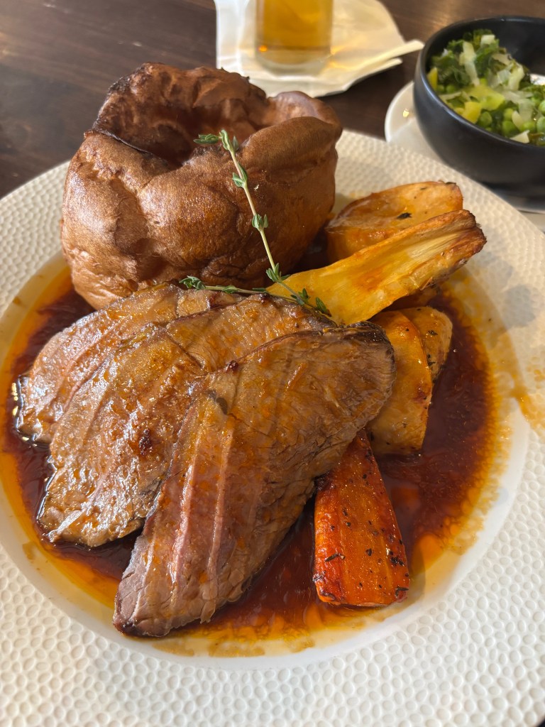 After a bit of shopping, I headed to the Swan Inn for my Sunday roast. The first time I was in London, I believe I had a Christmas roast, which I’m sure is very similar, if not the same thing. I’d been so excited to finally be in the UK for an actual Sunday roast. I could have done a repeat, but decided to try somewhere I hadn’t been on the main High Street yet. I really enjoyed the interiors, another transport to a different time. Felt like being in a cozy cabin. I wound up getting the roast sirloin, but immediately wished I tried the trio so I could have a taste of everything. I was honestly a bit underwhelmed. My favorite part was probably the roasted veggies. I was bummed, but super full.